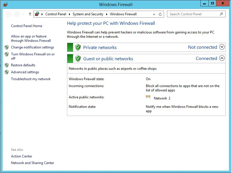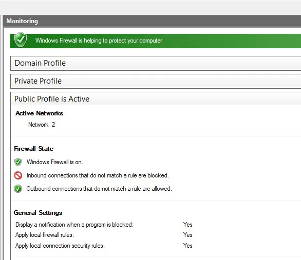 Windows-Firewall -> Public: On-> Advanced settings